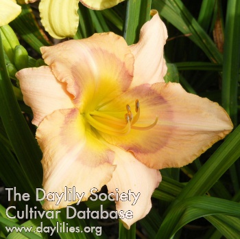 Description : ivory cream peach with peach to orchid lavender halo above yellow to green throat