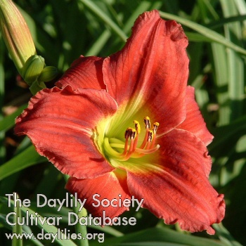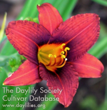 | Description : dark red with black eyezone and small yellow green throat | |