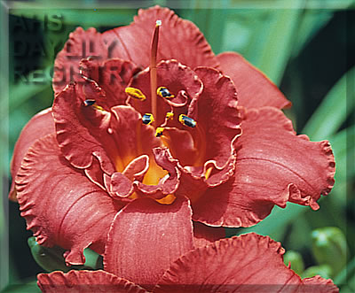 | Description : pink with lighter watermark and gold edge above green throat | |