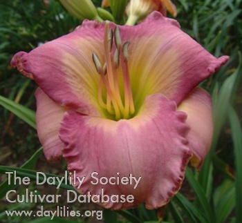 | Description : orchid lavender blend with orchid watermark above chartreuse throat | |