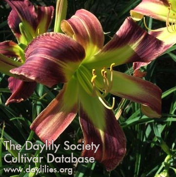 | Description : coral rose with rose red triangular band above huge vivid green throat | |