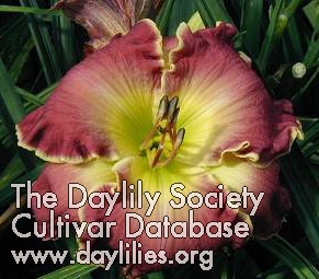 | Description : deep rose cranberry with pink wash and pink edge, yellow to green throat | |