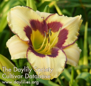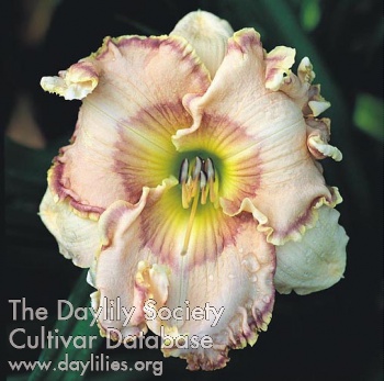 Description : very pale orange petals with dark eye, patterned appliqué throat