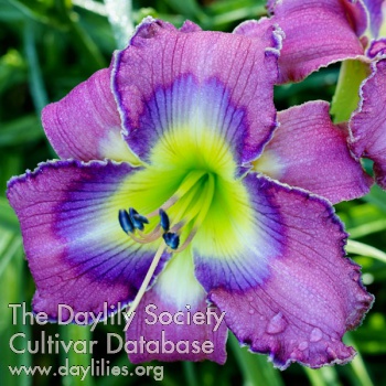 | Description : Mauve with a large, patterned bluish eye and green throat. | |