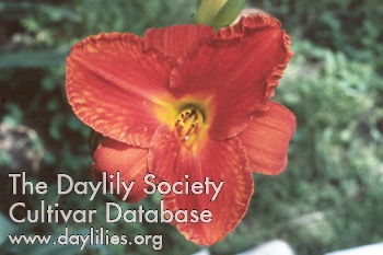 | Description : orange red self with yellow throat | |