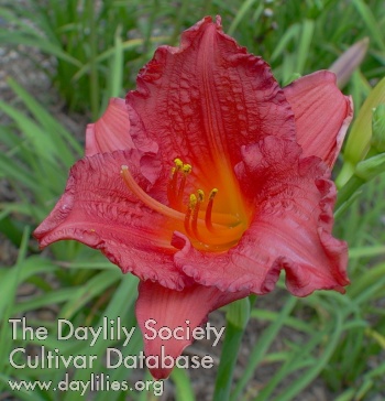 | Description : rose red self with lemon green throat | |