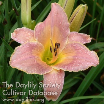 | Description : Pale pink self with yellow throat | |