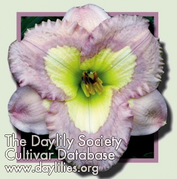 | Description : ivory with purple pattern eye and matching picotee with gold edge | |