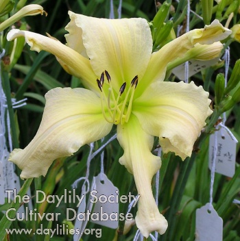 | Description : light lavender bitone with a bluish eye and large yellow throat that extends into petals and sepals | |
