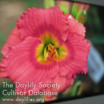 | Description : deep pink with rose halo and green throat | |
