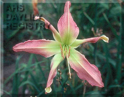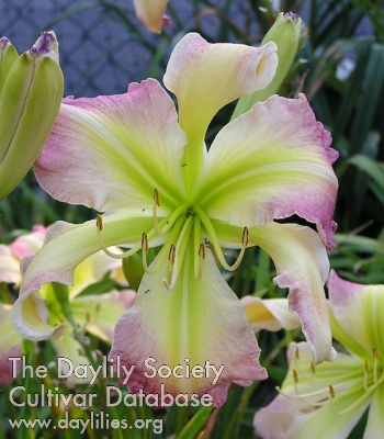 | Description : cream with blush pink on tips of petals and sepals, large green throat | |