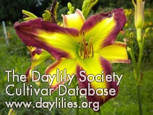 | Description : rose red with a darker red eye and a green triangular throat | |