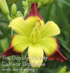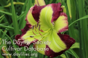 Description : Burgundy bicolor with large green throat and green sepals.