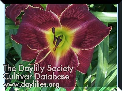 | Description : lavender purple spotted purple reverse bicolor with purple eye and edge above green to near white throat | |