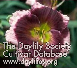 | Description : pale cream with indigo arrowhead shaped eye midrib and edge above celery green throat | |