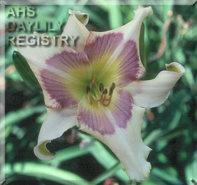 | Description : light cream violet with light blue violet eye and faint edge above green throat | |