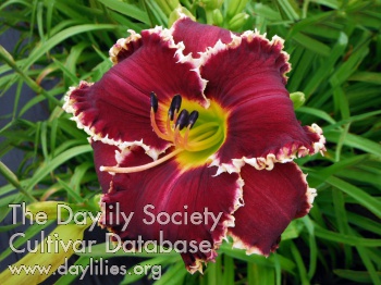 | Description : Dark purple with a very toothy gold edge on both the petals and sepals, and green throat. | |