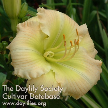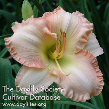 | Description : peach pink self with green throat | |