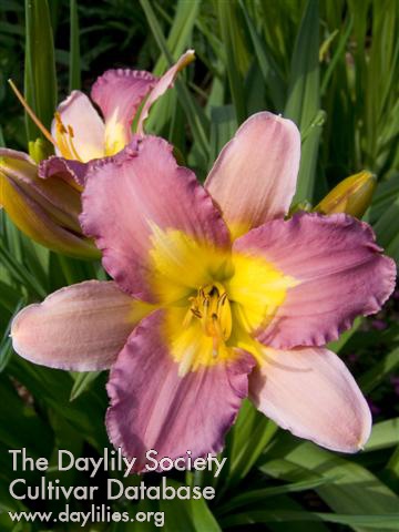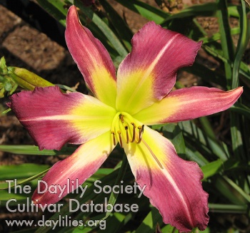 | Description : purple with faint darker halo above chalky green star shaped throat | |