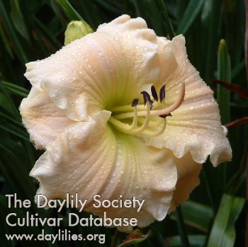 | Description : cameo pink cream polychrome above green throat | |