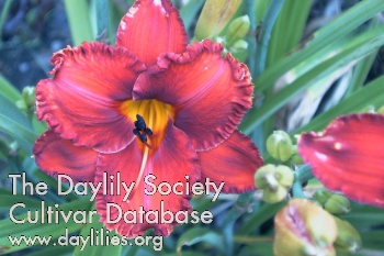 | Description : purple with rose purple eye and black purple edge above bright green throat | |