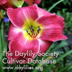| Description : rose with large cream pink watermark eye with narrow white edge above yellow to green throat | |