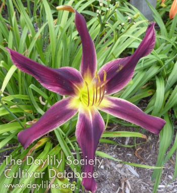 | Description : purple with a dark purple eyezone and very green throat, both petals and sepals are edged in lighter colors of purple and white | |