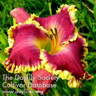 | Description : wine purple with large chalky watermark and edge and green throat | |