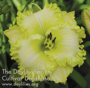 | Description : Orange, with large green heart, bright red eye and ruffled edge with small teeth. | |