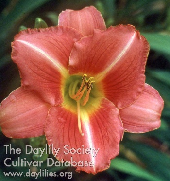 | Description : red and rose bitone with green throat | |