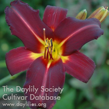 | Description : dark purple self with green throat | |