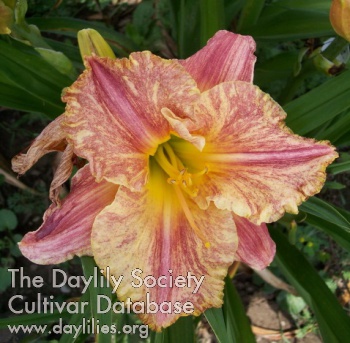 | Description : creamy yellow flower lightly speckled and streaked with light rose color, bright green throat | |