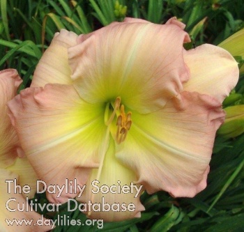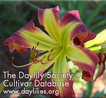 | Description : Butter yellow with light pink stippling above green throat. | |